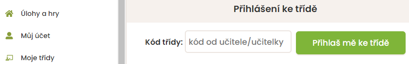 Po vytvoření profilu v záložce Moje třídy zadá žák unikátní kód třídy, který mu sdělíte.